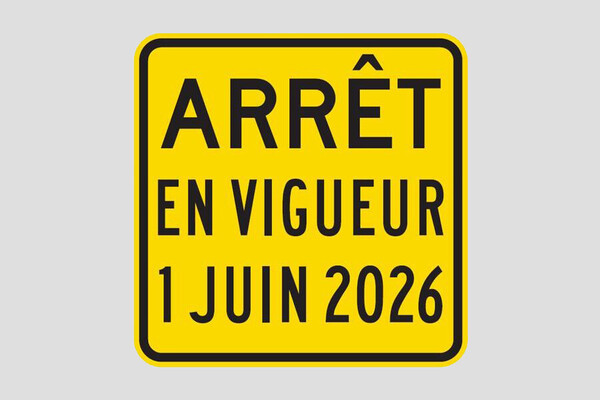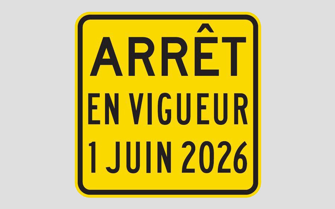 La nouvelle signalisation rentrera en vigueur dès le 1er juin 2026. Passez le mot!.
