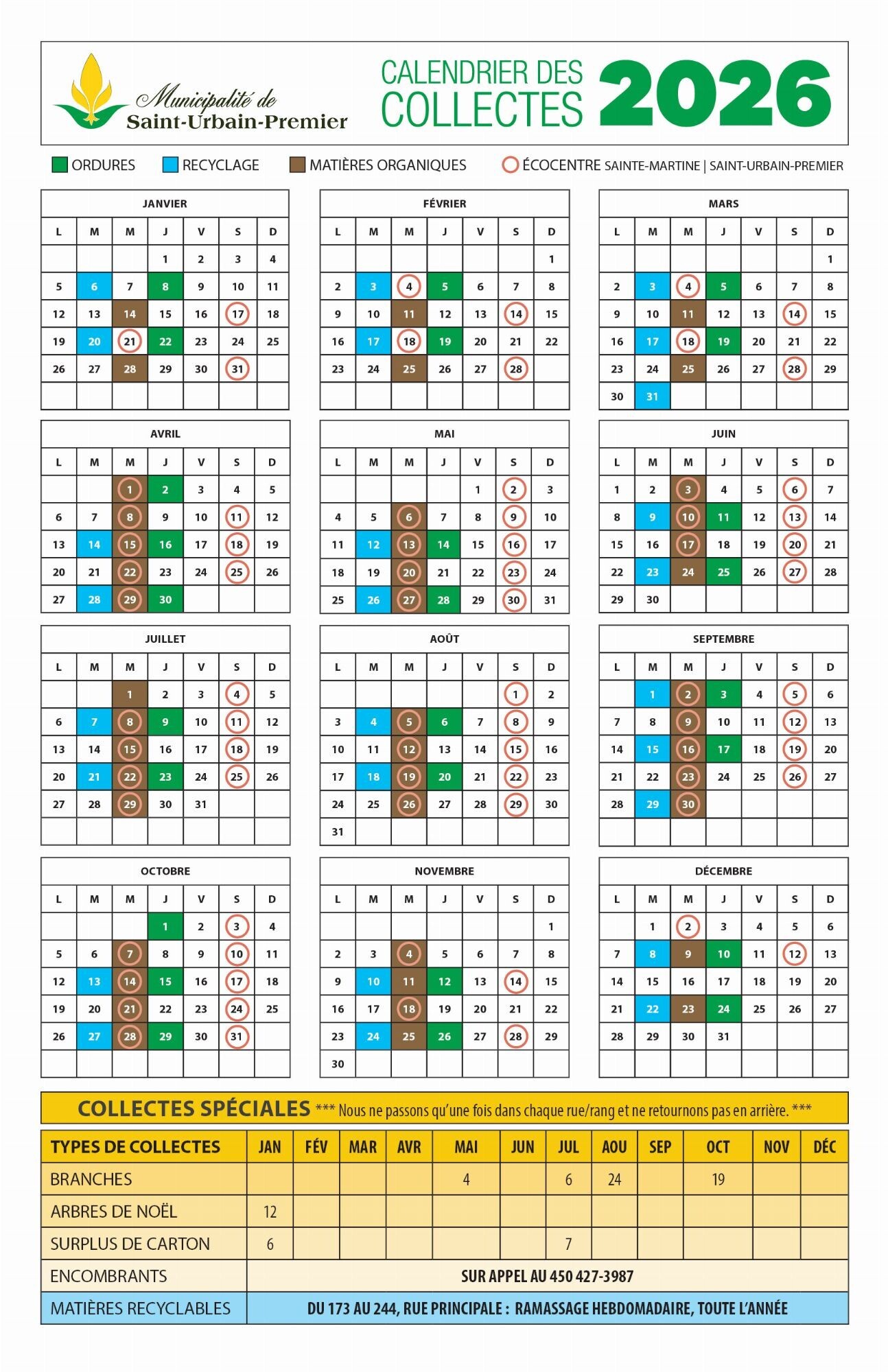 Les encombrants sont ramassés sur appel. Communiquez avec le bureau municipal au 450 427-3987 pour en faire la demande.